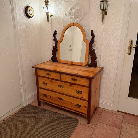 Nyslipad och nybetsad byrå i fint furu.