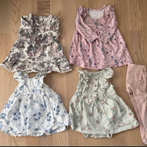 Det mesta är i fint skick! 2 klänning och 2 tröja har någon fläck och lite noppigt i luvan på koftorna!