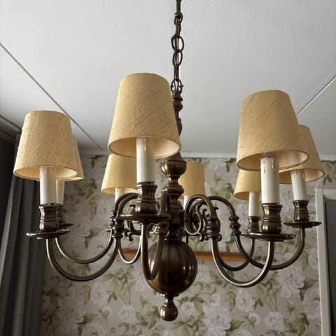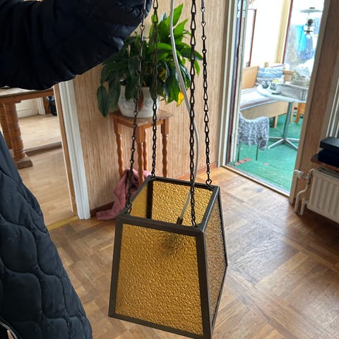 Snygg taklampa, 15 glaskupor inlindade i metallnät. Ledlampor.