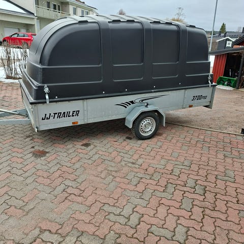 Har använt den som skotersläp så små nötskador efter styrstål finns.