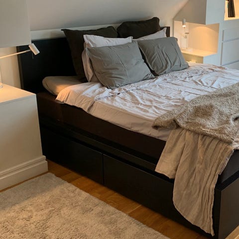Två stycken sänglådor på hjul IKEA Songesand. Total bredd 199 cm. Funkar under alla sängar som måtten funkar för.
