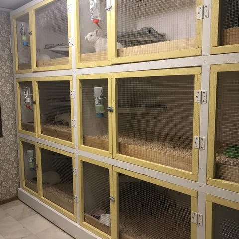 Ingår: 2 vattenflaskor, 2 höhäckar, 2 st hus samt två matskålar samt 1 stege.