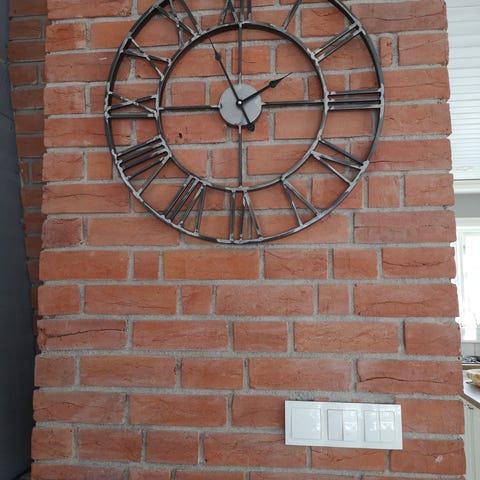 Vägg med tegelstensmönster i olika nyanser av rött och brunt. Används som väggbeklädnad eller dekorativt element.ca 5 kvm. Ny pris 1500 kvm nu 750kr kvm
