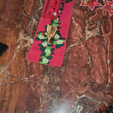 Liten grön fläck från en penna el annat på det lilla bordet, se bild. Kanske går att få bort på ngt sätt. Inget märkvärdigt.
