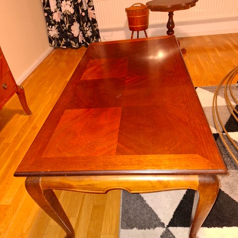 Träet är mycket gammalt och helt uttorkat, vilket gör bordet förvånansvärt lätt i förhållande till sitt robusta utseende - ett tydligt tecken på ålder och äkta hantverk.