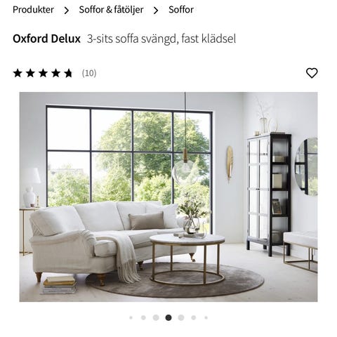 Två soffor köpta 2018 från Mio av typen Oxford 3-sits svängd delux fast tyg Can snow. Inköpspris 33990kr, kvitto finns.