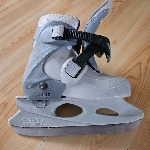 Barnskridsko i storlek 33 som går att utöka upp till storlek 36.
