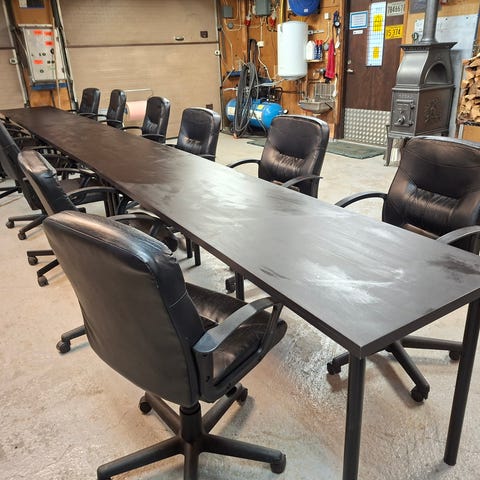 IKEA OVAL bord med vit bordsskiva och svarta ben. Bordet är kombinerat med sex svarta stolar med metallram och svart sits och ryggstöd i trä . Passar för matplats eller konferensrum. 2000kr vid snabb hämtning.