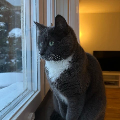 Hon är en otroligt kärleksfull och gosig tjej som gärna blir buren och trivs bäst när hon får sova högt uppe. Hon har levt som innekatt, men vi tror att hon skulle må riktigt bra av att få tillgång till en terrass eller trädgård och gärna även få umgås med andra katter.
