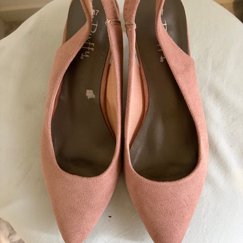 Slingbackskor i storlek 39, rosa/beige. Skorna har en spetsig tå och en smal klack med justerbar rem runt hälen. Oanvända. Endast provade.
