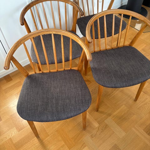 Två ljusbruna Ute stolar. Tror dem är från IKEA men inte säker. Dem är lite skitiga men fullt funktionella. Kommer med 2 dynor också. Skriv vid fler frågor. Hämtas I Finspång.