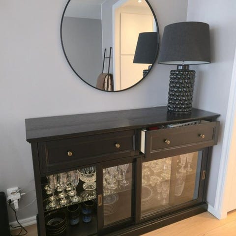 Finns i Bromma för avhämtning. Man bör vara två som hämtar då skåpet är rätt tungt.