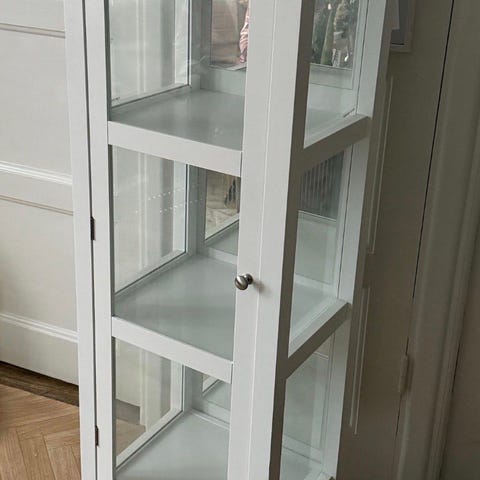 Säljer vårt vitrinskåp av modell Syvde från IKEA, ca 3 år gammalt. Fint skick, finns ett litet märke från en flytt på ena sidan, men inget som man tänker på eller som påverkar funktionen. Nypris ca 1500:-.