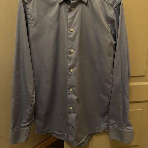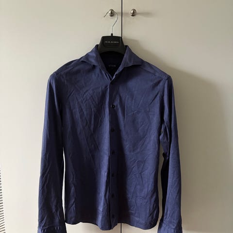 Mörkblå Eton skjorta i storleken S slim fit. Skjortan är i mycket bra skick, och stryker självklart den innan frakt! Säljes då den är för liten.
