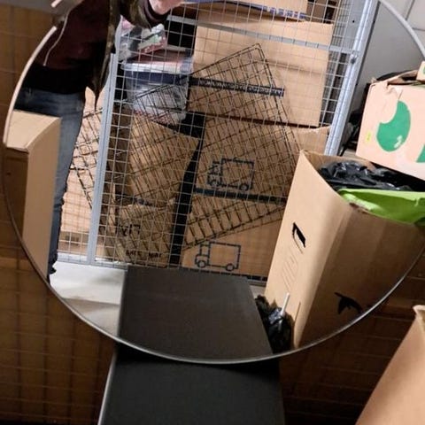 Bredaste ytterkant ca 93 cm i diameter och själva spegeln ca 87 cm i diameter.