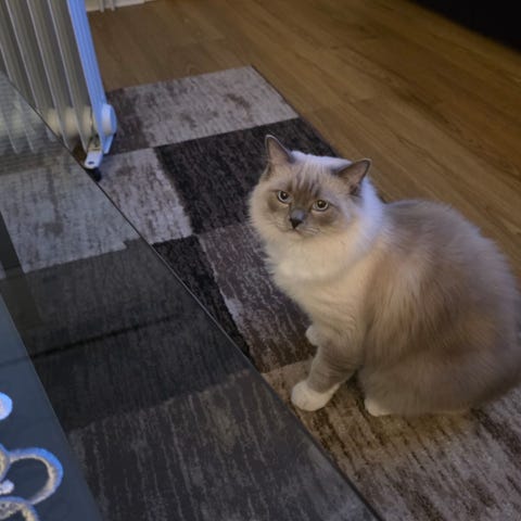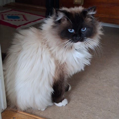 Smsm är en vacker Ragdoll med en fantastisk fluffig och mjuk päls. Han har stora blå ögon och hans temperament är underbart.