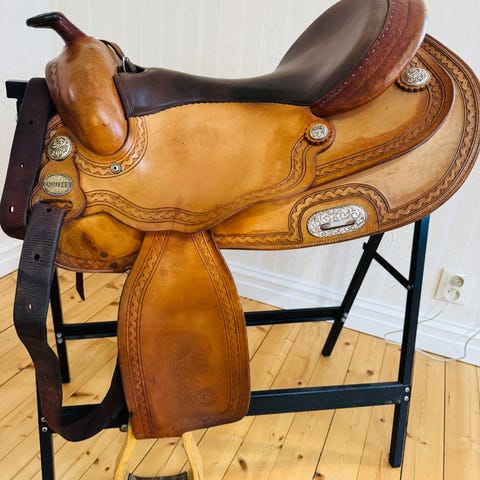 Westernsadel, huvudlag , tyglar, lasso, sporrar och boots.