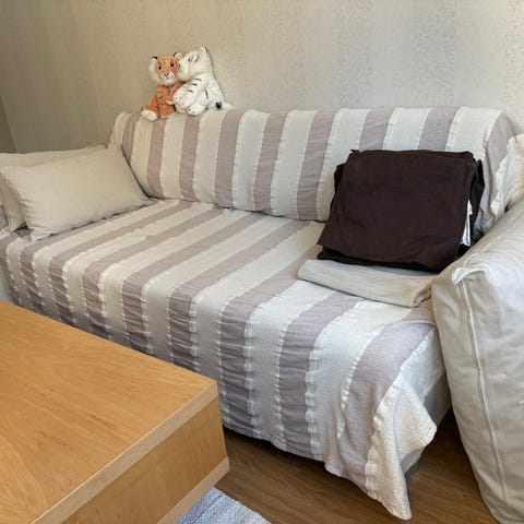 Bäddsoffa beige tyg