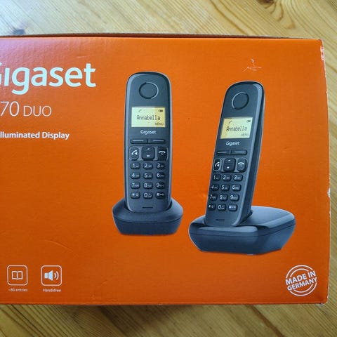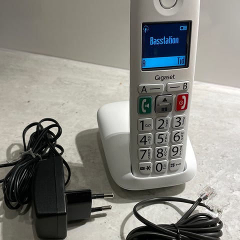 Tre Gigaset AS18H telefoner med tillhörande basstationer och laddare. Batterier ingår.