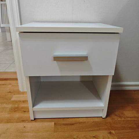 Vitt bord, med glasskiva