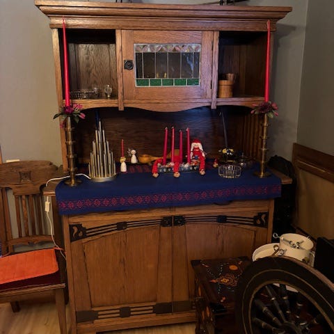Antik Högstol i ek med lädersits handgjord mycket vacker