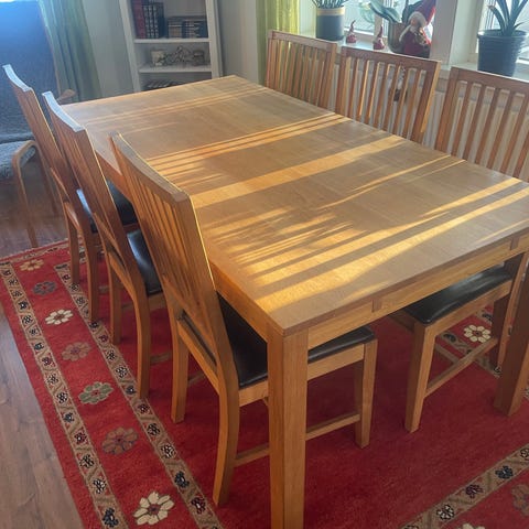Matbord i körsbärsträ + 6 stolar 500:-