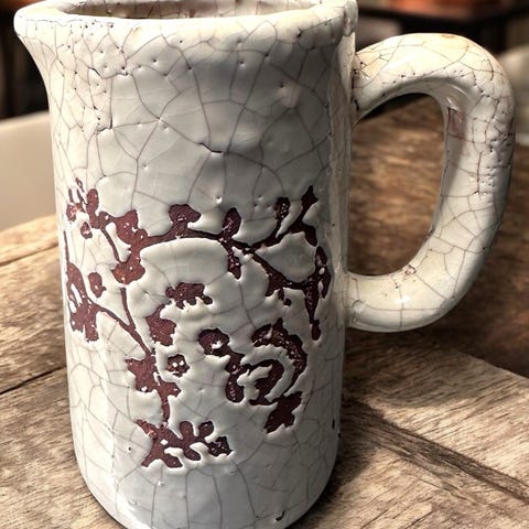 Set med tre vita keramiska skålar, vardera med handtag. Materialet är keramik och färgen är vit.