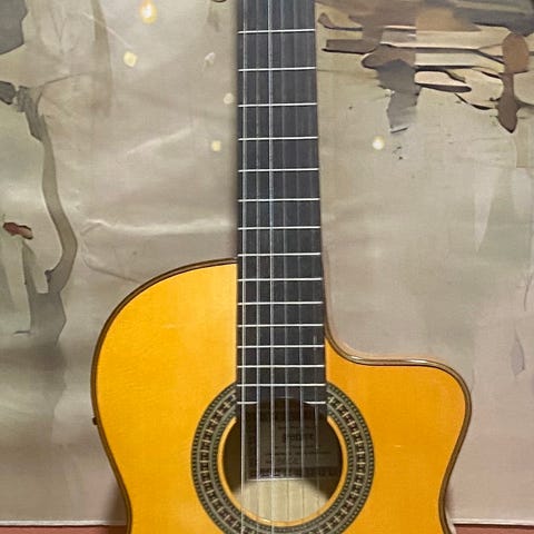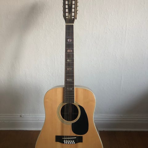 Japan vintage 70-tal. Helt fantastiskt i skicket, kropp i ett stycke och original. Natur är perfekt finish, inga skarvar och den är ju redigt snygg för att inte tala om hur stabil den är och hur perfekt den spelar. Gamla snygga logon från 70-talet även kallad silverline som endast användes på high end gitarrer. Banden är fina och all justering funkar som den ska, mästerligt bygge i bästa trä med bra mekanik. Faktura inklusive moms. Hardcase ingår och den kan skickas.