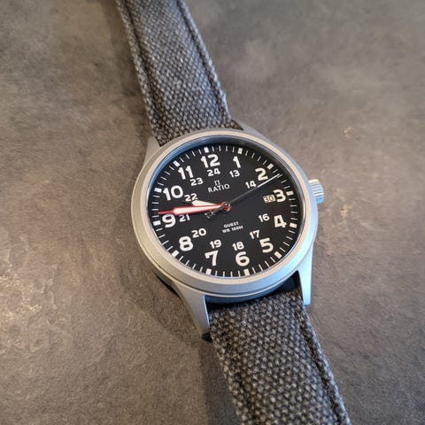 Stilren herrklocka med en graphite grey urtavla och boett som mäter cirka 42 mm i diameter.