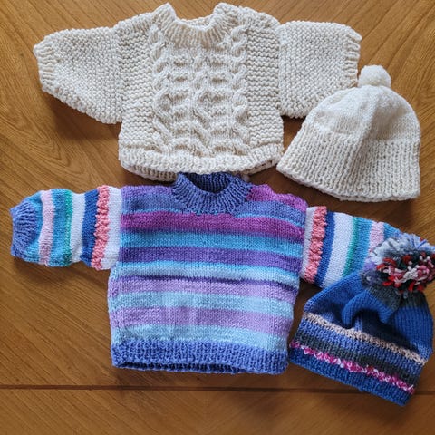 Hade varit roligt om nån liten kunde få glädje av detta och det hade varit roligt om mamma kunde få tillbaka lite för garnkostnaden.