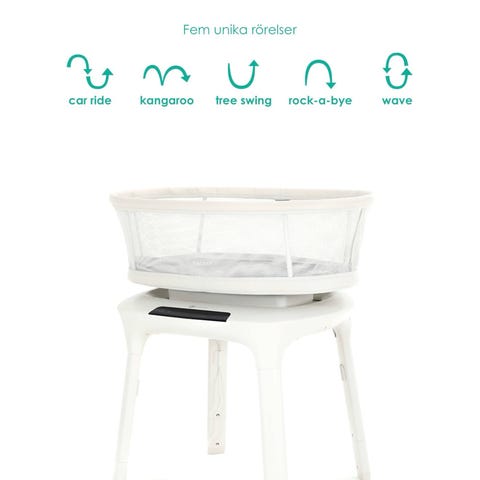 Finns många olika vaggningsinställningar & ljud. Kan styras med mobilen också med deras app.