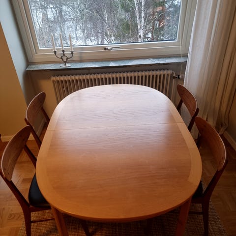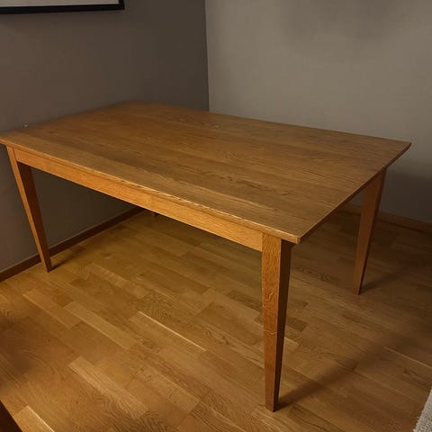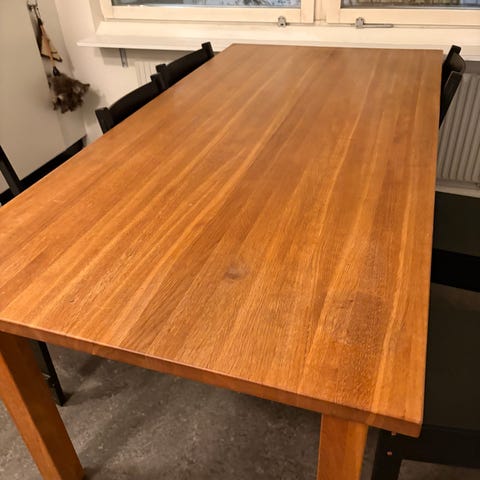 Massivt ekbord med plats för upp till 10 pers. behöver en lätt slipning om