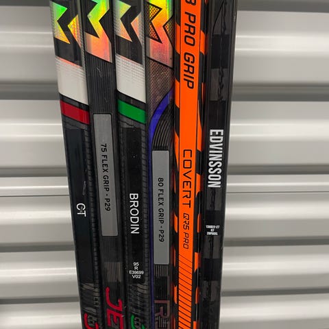 Costum klubbor 2 st Bauer 82 flex med Benn vinkel 3 st ccm alla p90 TM vinkel o 75-80 flex alla är i mycket bra skick vissa helt nya 1000:- st