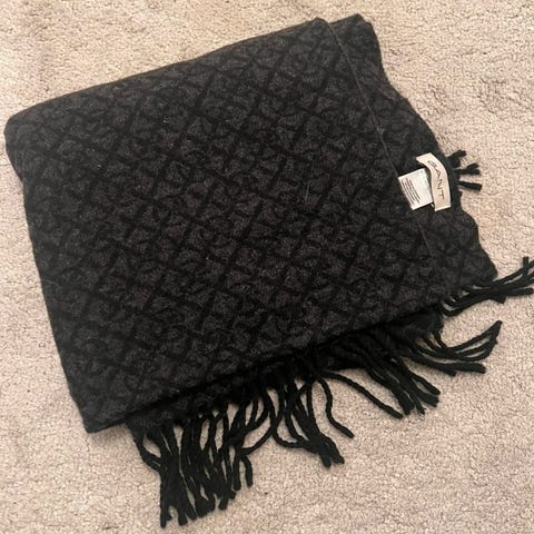 160×20cm i supermjukt slitstarkt allpacka ull den är mer svart i färgen då bilderna är tagna i ljusa förhållanden o konstig återgivning.