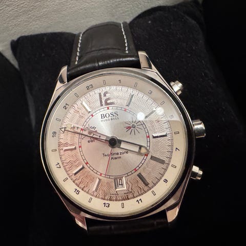 OBS - Denna modell är slutsåld hos Lamborghini Products för beställning! Originalförpackning, bruksanvisning, original verktyg, oanvänt gummi samt oanvänt läderarmband. Klockan är i fint skick och fungerar perfekt.