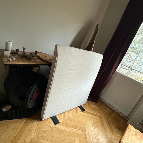 Sänggavel i mörkgrå textil med bredden 120 cm, alternativt 110. Passar för sängar av motsvarande storlek och är tillverkad i tygmaterial.