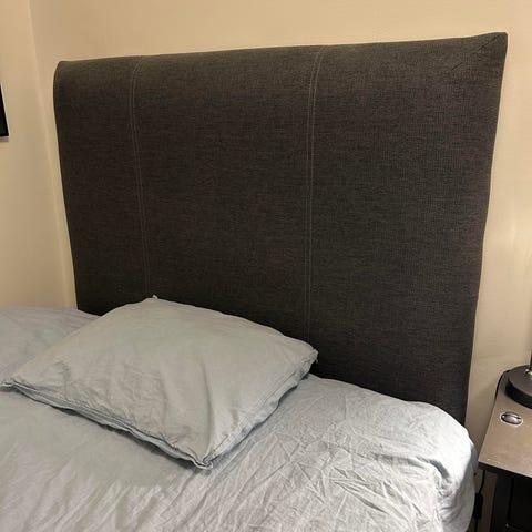 Sänggavel mörkgrå textil 120x110