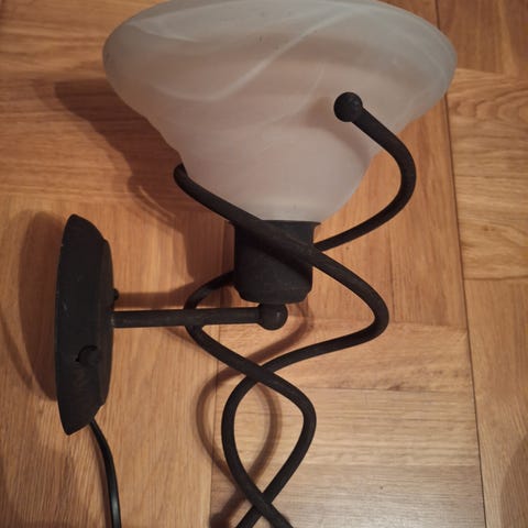 Vägglampa i pulverlackad metall, monterad på ett väggfäste med höjden 100 cm. Den långa armen som håller lampskärmen kan justeras uppåt och nedåt. På den långa armen sitter en mindre, justerbar arm som håller lampskärmen. Skärmen har vit insida och är justerbar i höjd- och sidled.
