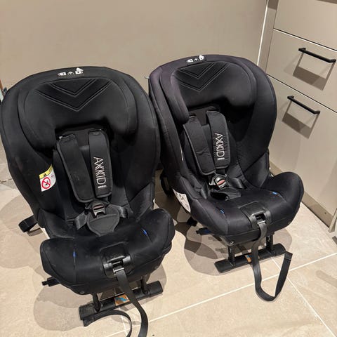 Bilbarnstol Axkid Minikid 2.0 i svart färg, köpt 2020, med extra tillbehör som syns på bilden och som möjliggör enkel och smidig montering i bilen. Mycket gott skick, rengjord och utan skador.