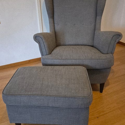 Vi säljer våra två IKEA strandmon fåtöljer inklusive pallar. Hör av er vid intresse.