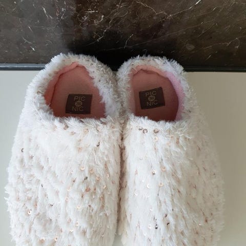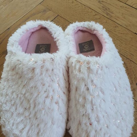 Moheda tofflor med gummisula