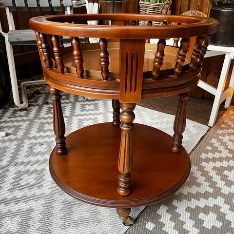 Fint bord i trä med hjul och mässingdetaljer. 50-tal.