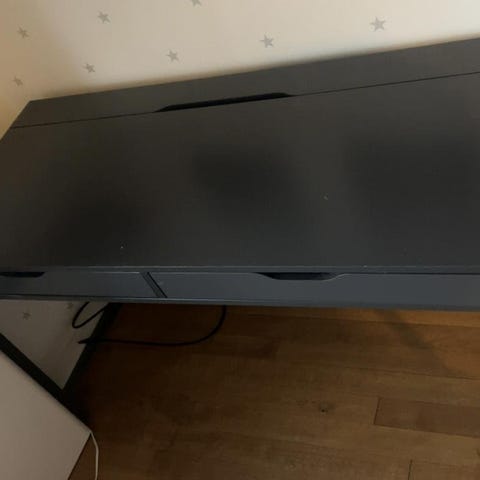 Fint skrivbord med smart förvaring. Björk plywood. Dansk design och tillverkning.