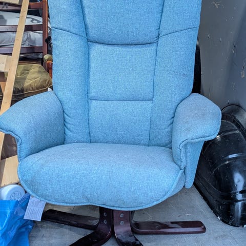 Jätteskön fåtölj där du steglöst kan luta bak ryggstödet.