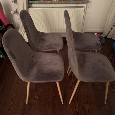 Bekväm och snygg stol med sammets överdrag. Det finns 32 stolar i fyra olika färger (gråa, blåa, rosa och gröna).