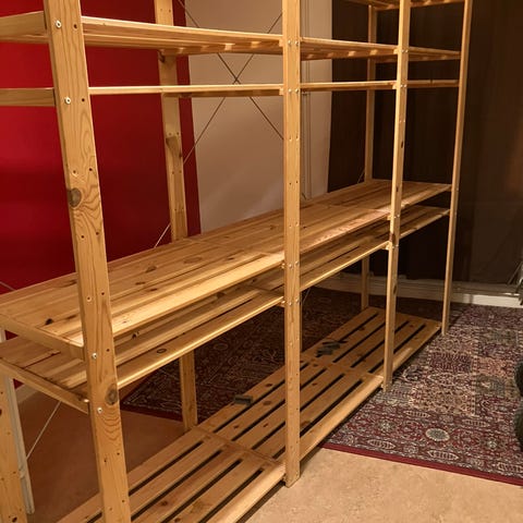 7 st hyllsektioner med dubbla lådor. Har haft dom i garaget för förvaring av verktyg mm. Så ej nyskick. Bortskänkes.