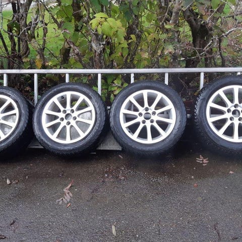 Fina alum.fäljar med däck utan dubbar 4-5mm kvar till Saab 9-3. Ring gärna istället för e-post 073 7720730