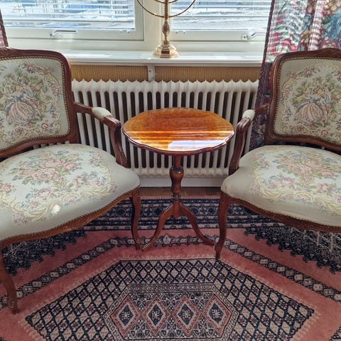 En rejäl äldre barnmatstol.