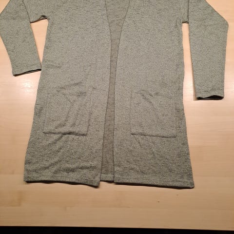 Säljer en enkel och mjuk grå kofta från H&M i storlek S. Koftan har lång ärm, öppen framtill och är tillverkad i ett tunt stickat material. Perfekt att slänga över en t-shirt eller linne när det är lite kyligt ute.