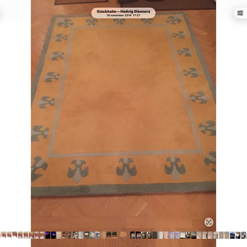 Superfin barnmatta t ex i formen av en igelkotte. 100 cm lång och 120 cm bred. 100% bomull. Bild är framsidan på mattan och bild 2 är baksidan av mattan. Kan hämtas på Fridhemsgatan vid Fridhemsplan.